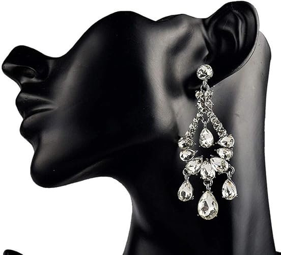 These stunning chandelier earrings feature a beautifully layered design with multiple teardrop and round-cut crystals that catch the light from every angle. Crafted in a silver-tone finish, they add an instant touch of glamour and sophistication to any outfit. Lightweight yet luxurious, these earrings are ideal for brides, bridesmaids, prom nights, festive occasions, or elegant evening looks. Perfect as a gift for someone who loves stylish statement jewelry